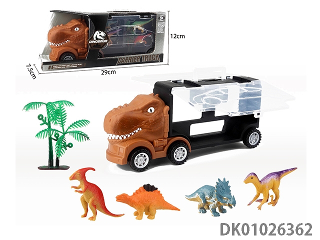Small tyrannosaurus rex storage car, a warrior dinosaur and a tree