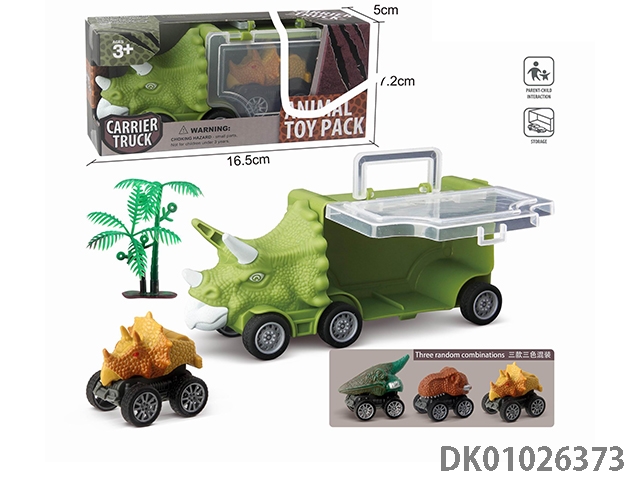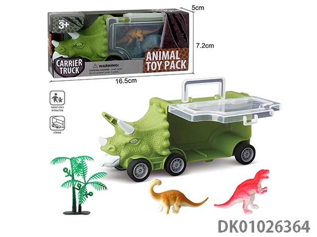 Small triceratops storage car, a warrior dinosaur and a tree