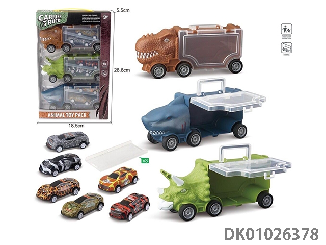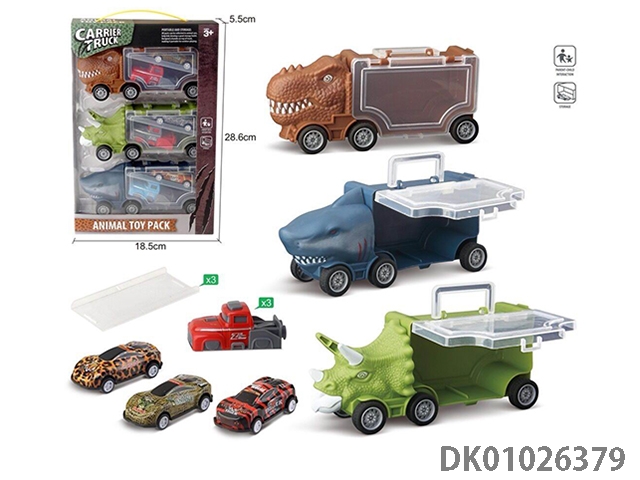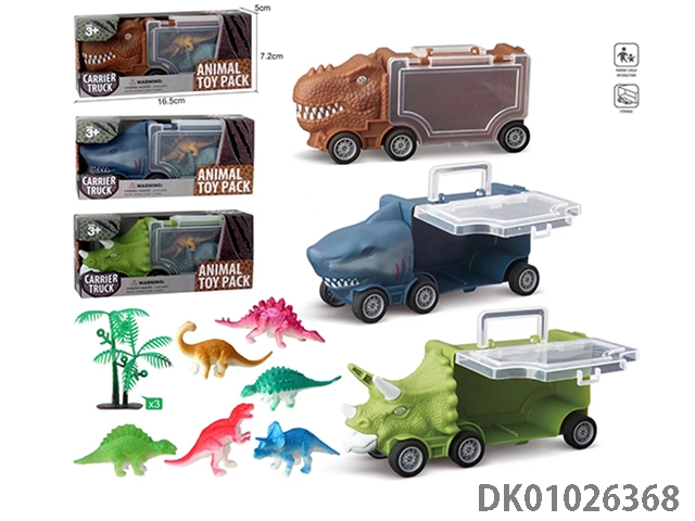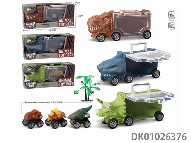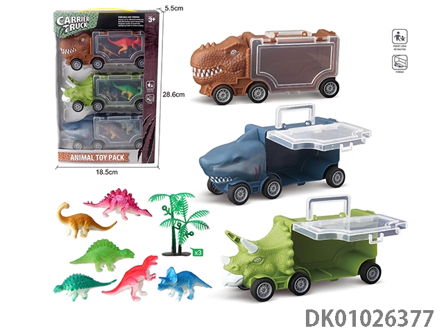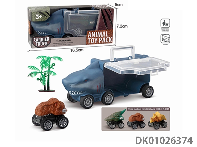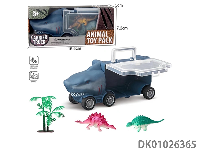 Shark storage car, 2 dinosaurs and 1 tree