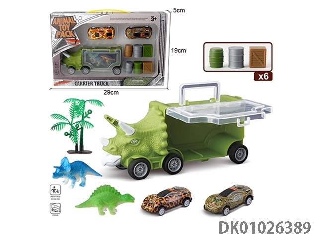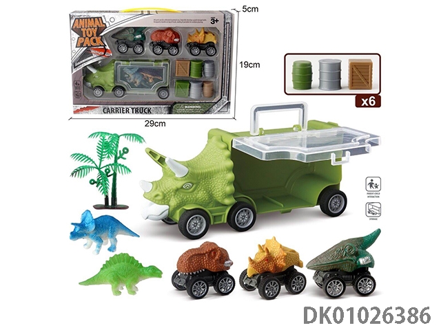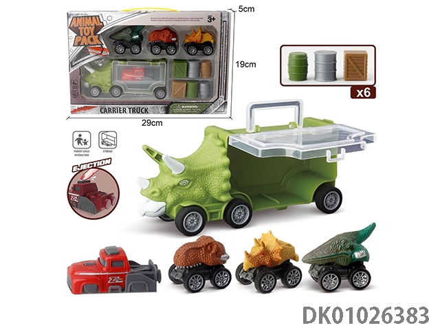 Small triangle dragon storage car, 3 dinosaur cars and 1 ejection and 6 accessories