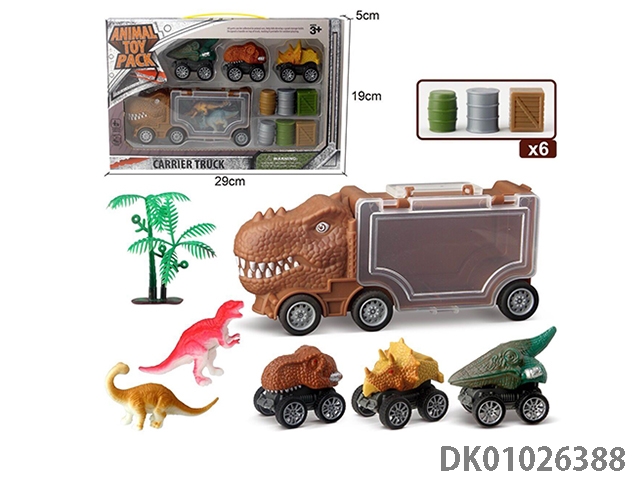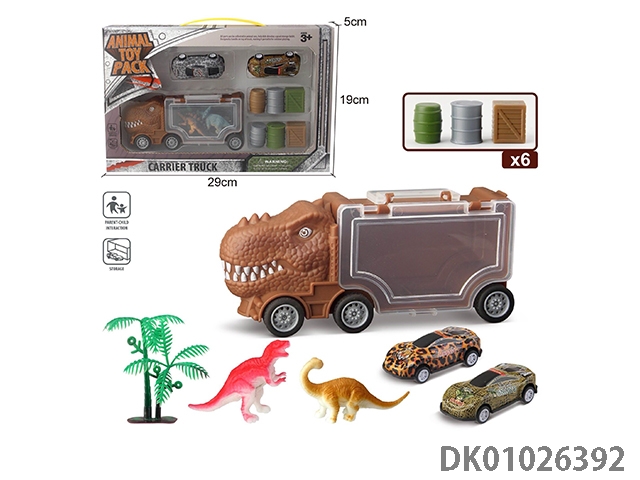 Tyrannosaurus rex storage car, 3 dinosaur cars and 1 ejection and 6 accessories