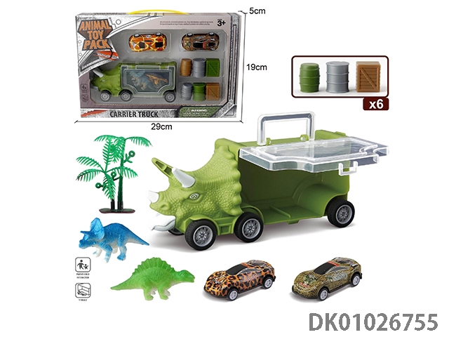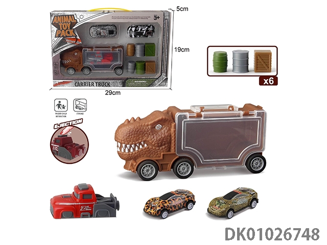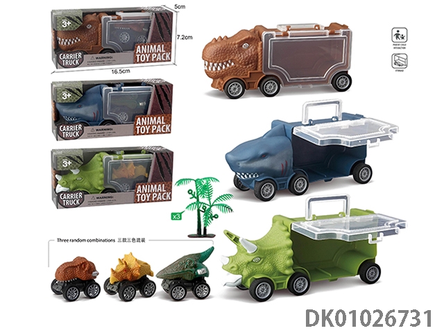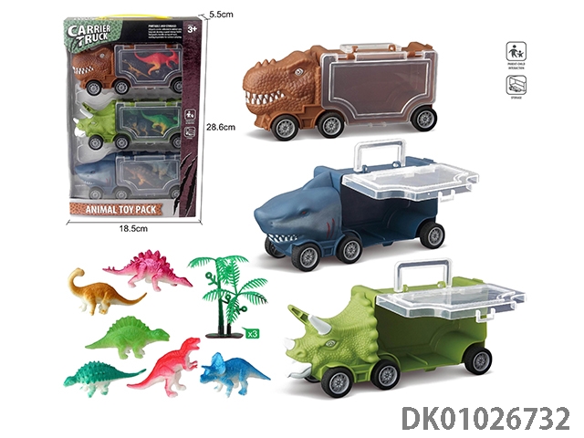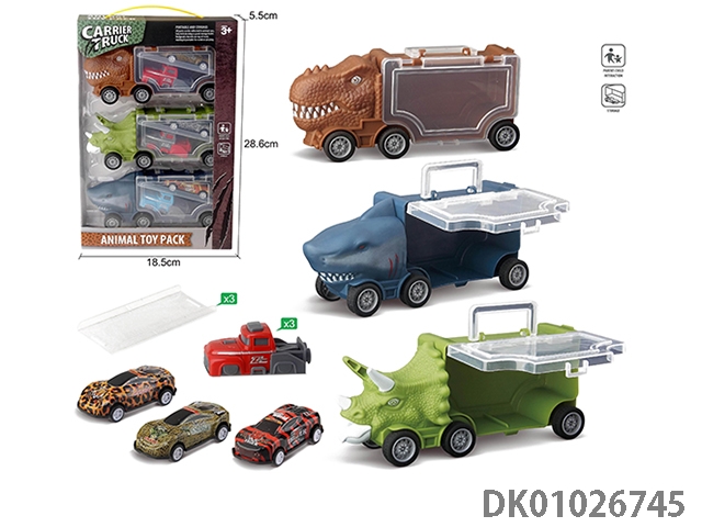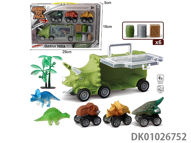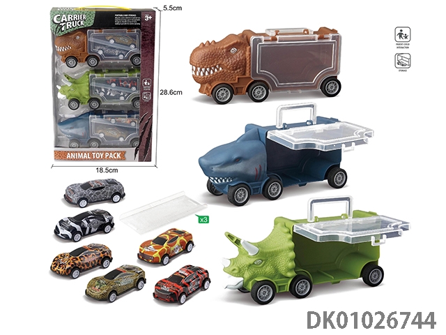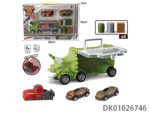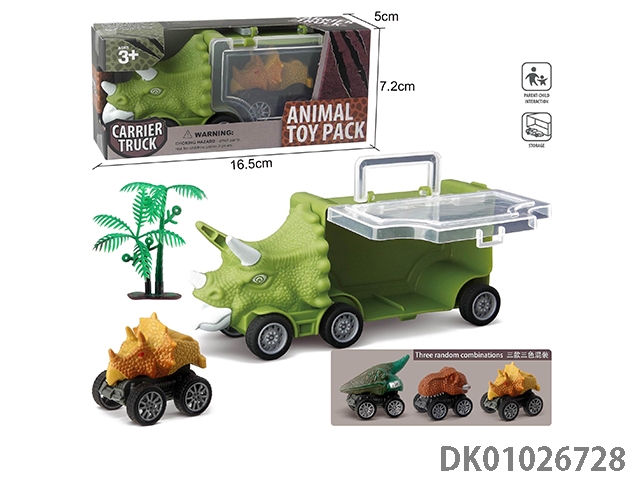 Small triangle dragon storage car, 3 dinosaur cars and 1 ejection and 6 accessories