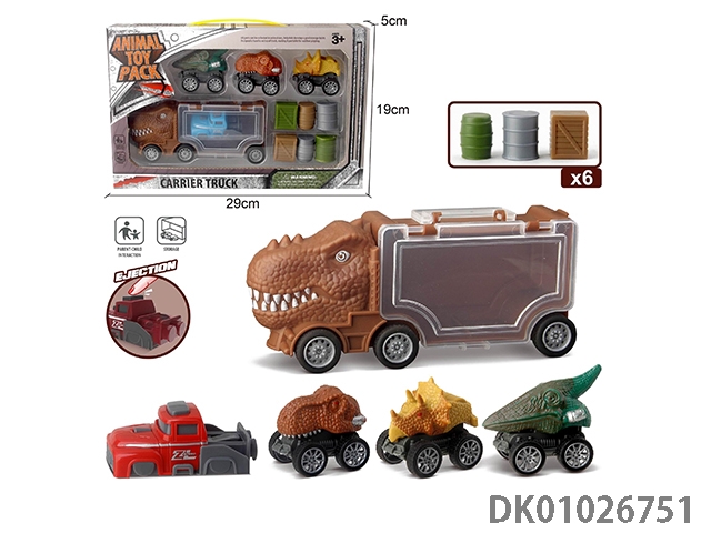 Tyrannosaurus rex storage car, 3 dinosaur cars and 1 ejection and 6 accessories