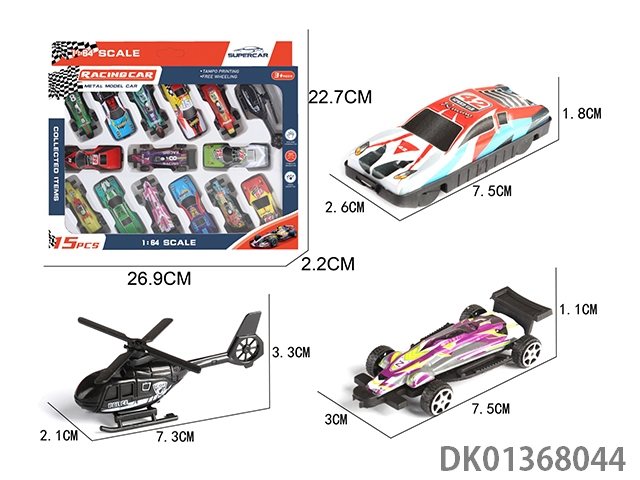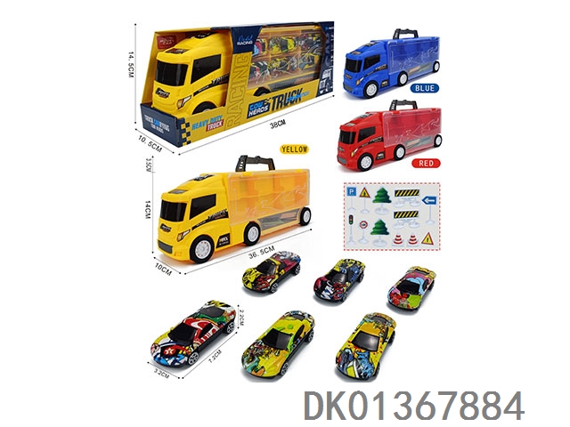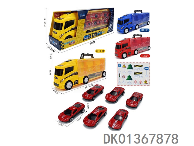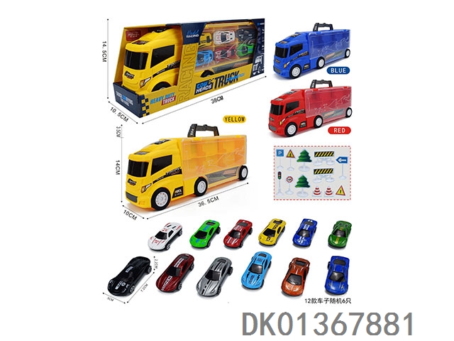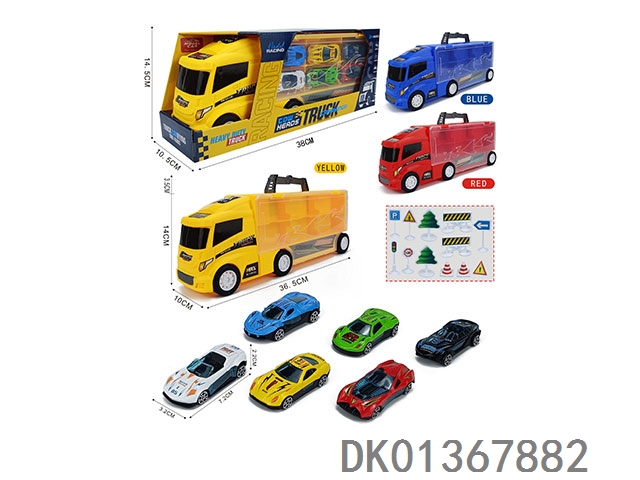 Handheld gift box container sliding trailer with 6 sliding alloy sports cars and 12 road signs