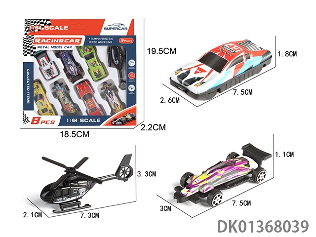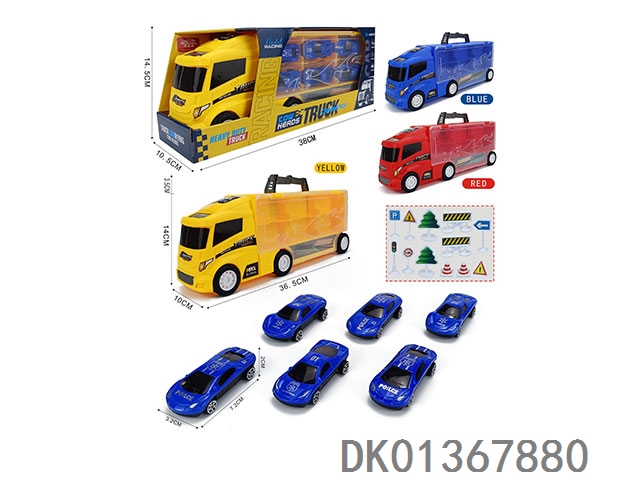 Handheld gift box container sliding trailer with 6 sliding alloy police cars and 12 road signs