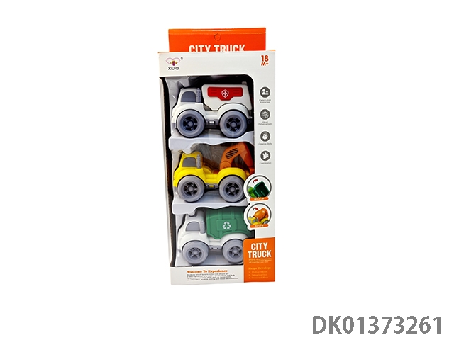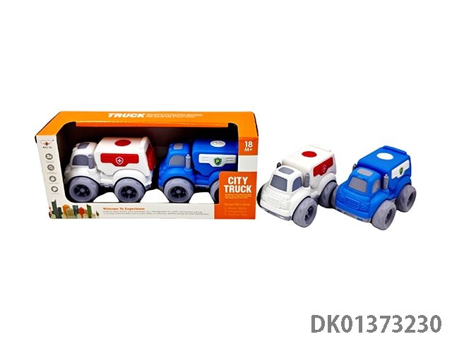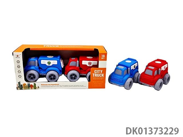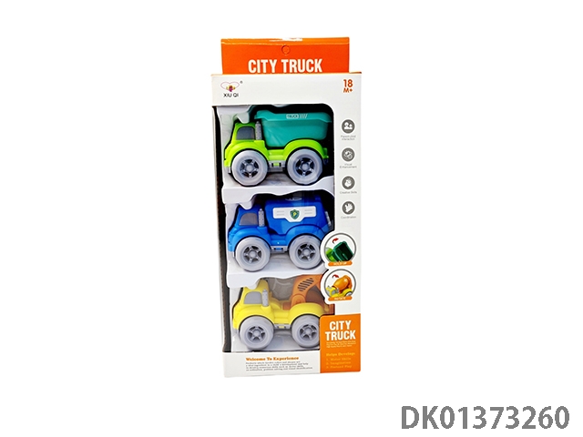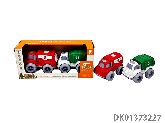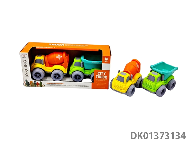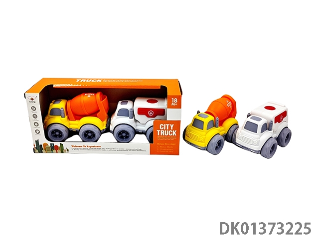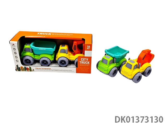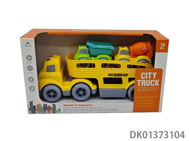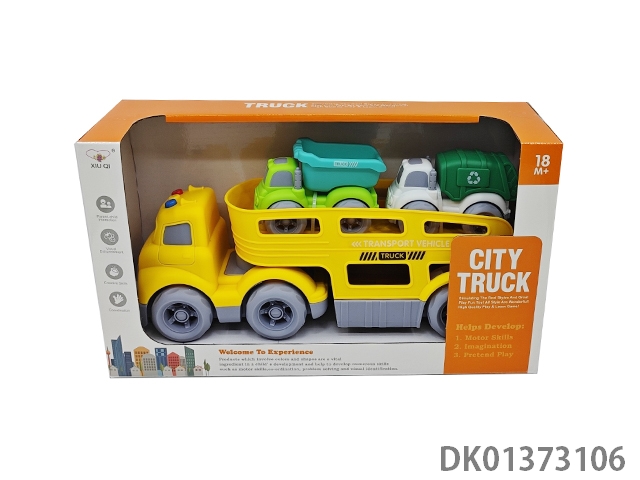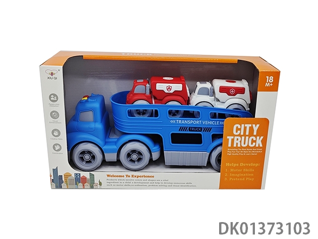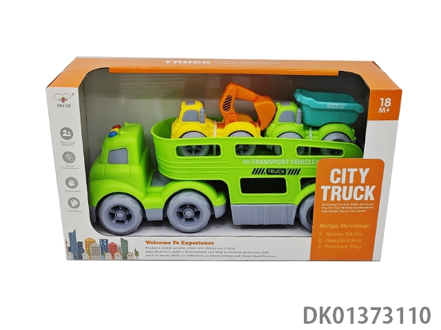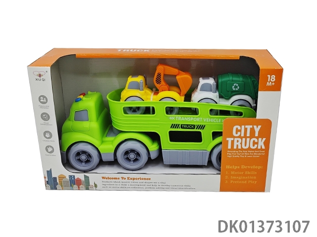 Gliding cartoon tractor transporter (with light music, with 2 scooters)