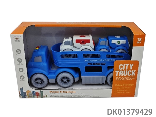 Gliding cartoon tractor transporter (with light music, with 2 scooters)