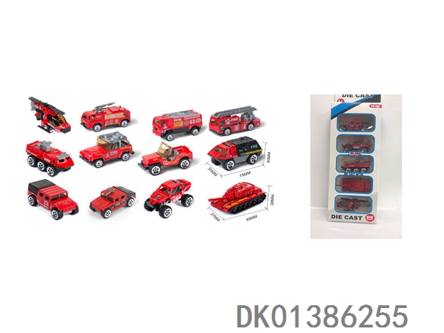 12 Fire sliding alloy vehicles (5 pieces/box)