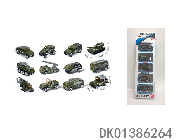 11 Military randomly mixed sliding alloy vehicles (4 pieces/box)