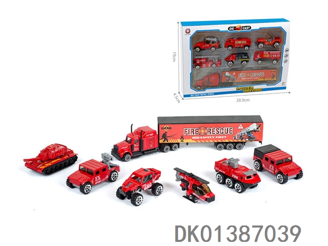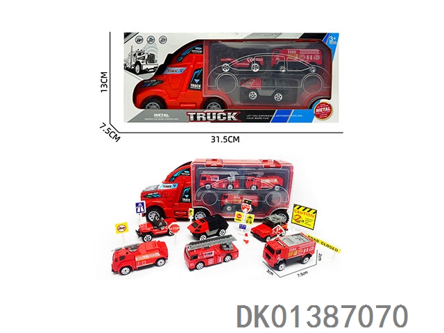 Container trailer and 3 alloy fire trucks (with road signs)