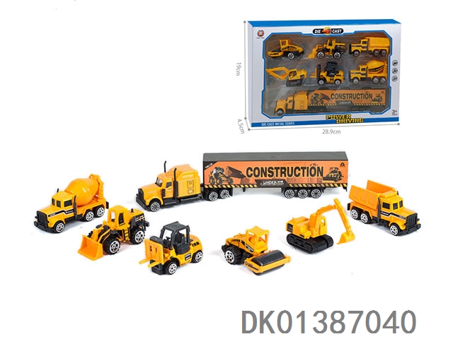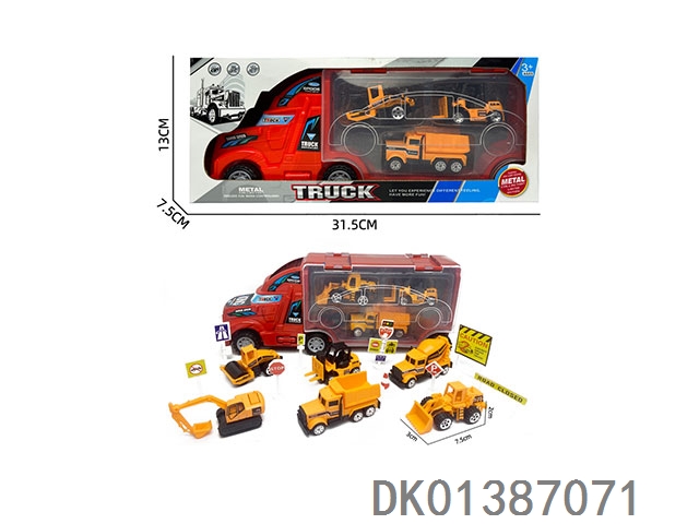 Container trailer and 3 alloy engineering vehicles (with road signs)