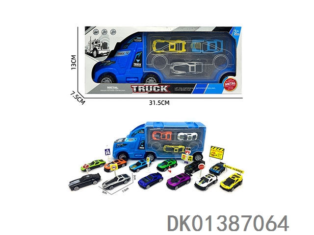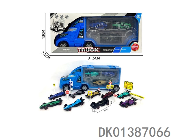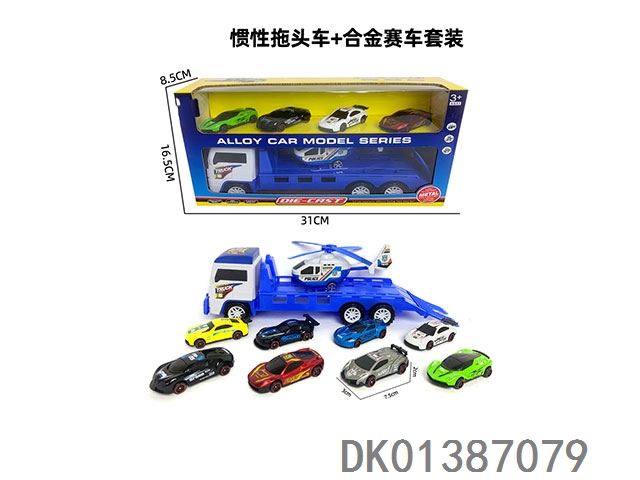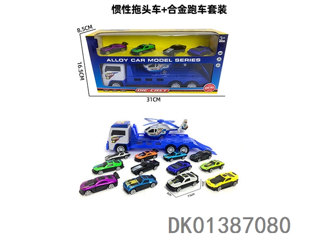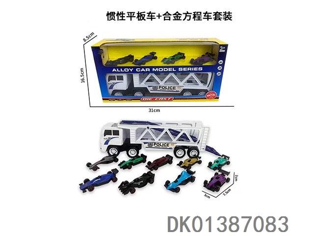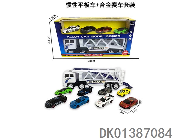 Inertial flatbed and alloy racing car set
