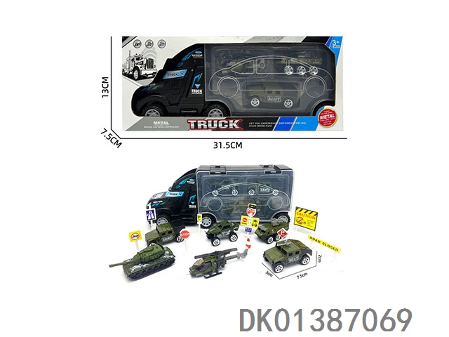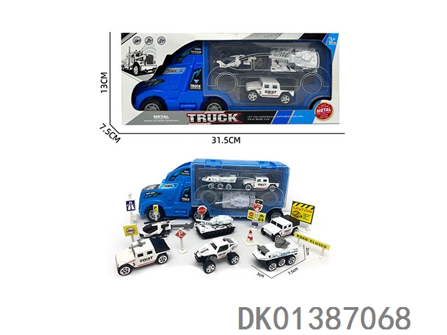 Container trailer and 3 alloy special police vehicles (with road signs)