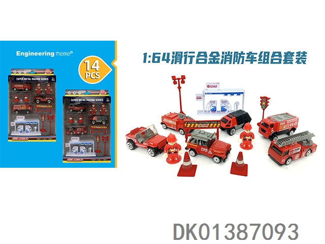 1. 64 Sliding alloy fire truck combination set