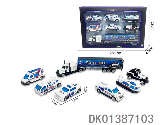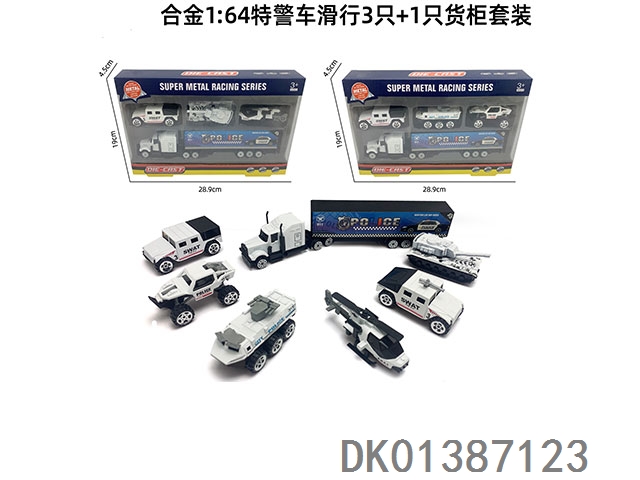 Alloy 1; 64 special police vehicles sliding 3 and 1 container set