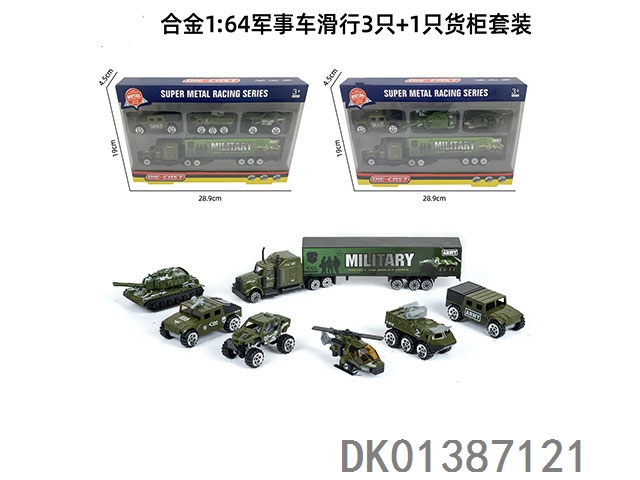 Alloy 1; 64 military vehicles slide 3 and 1 container set