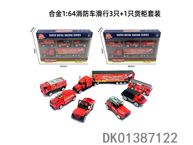Alloy 1; 64 fire trucks with 3 slides and 1 container set