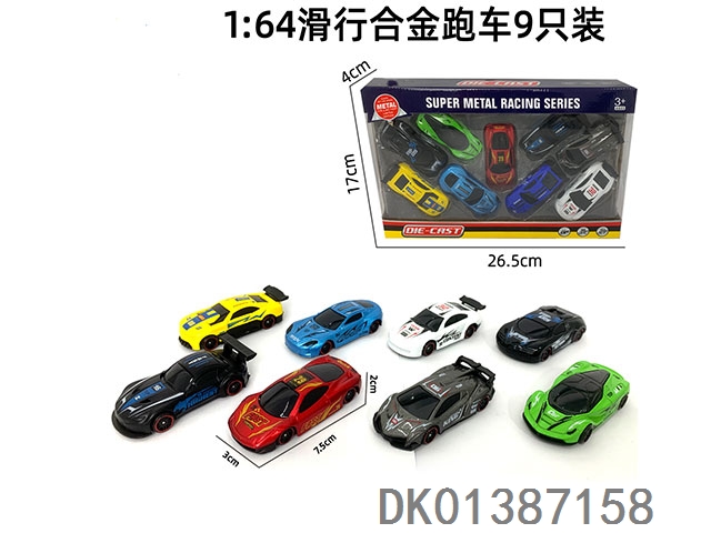 1: 9-Piece set of 64 sliding alloy sports cars