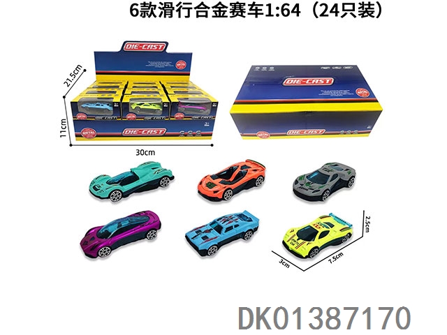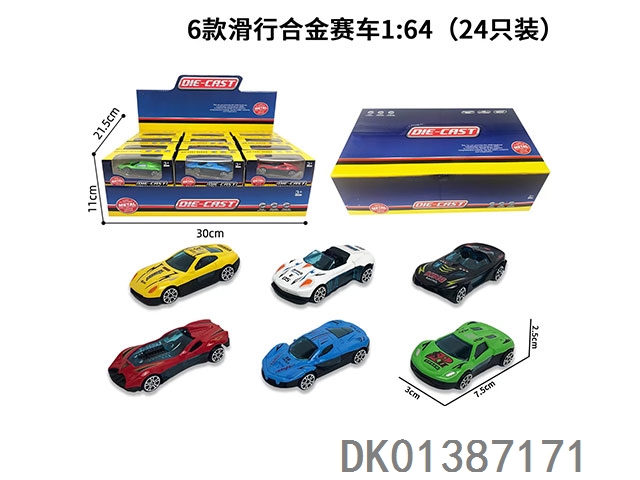 6 Sliding alloy racing cars 1:64 (set of 24)