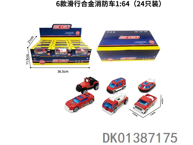 6 Sliding alloy fire trucks 1:64 (set of 24)