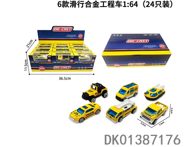 6 Sliding alloy engineering vehicles 1:64 (set of 24)