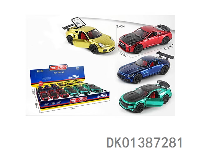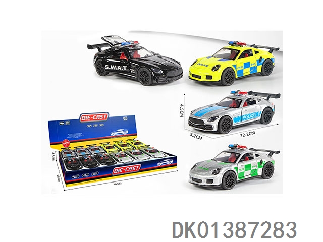 1: 32 Alloy car, sports car, police car (2 models with 4 colors mixed), three door return, 12pcs//box
