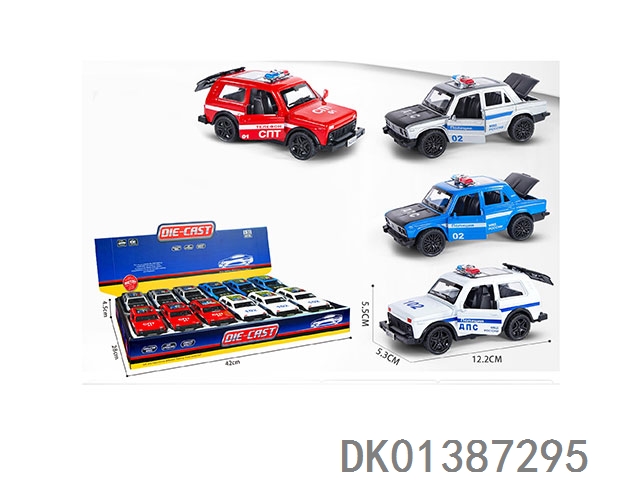 1: 32 Alloy car lada police car (2 types of 4-color mixed) with three door return force 12pcs//box
