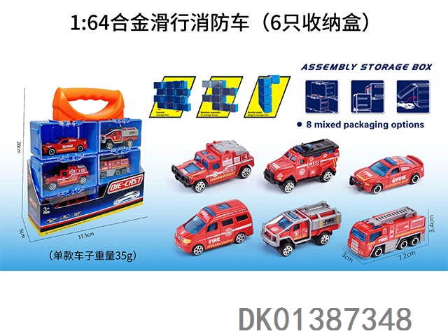 1: 64 Alloy sliding fire truck (6 storage boxes)