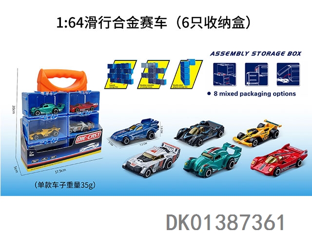 1: 64 Alloy sliding race car (6-pack storage box)
