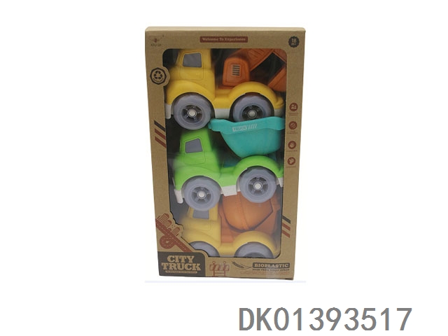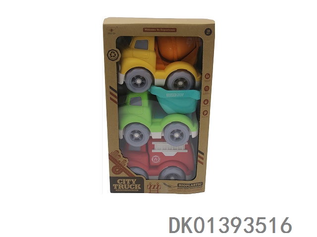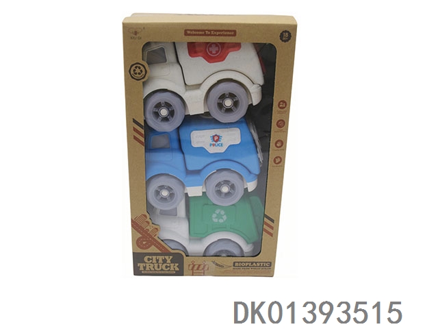 3-Piece window box wheat straw material sliding cartoon car (no sound or light)