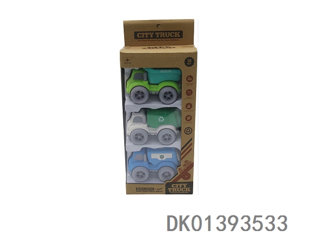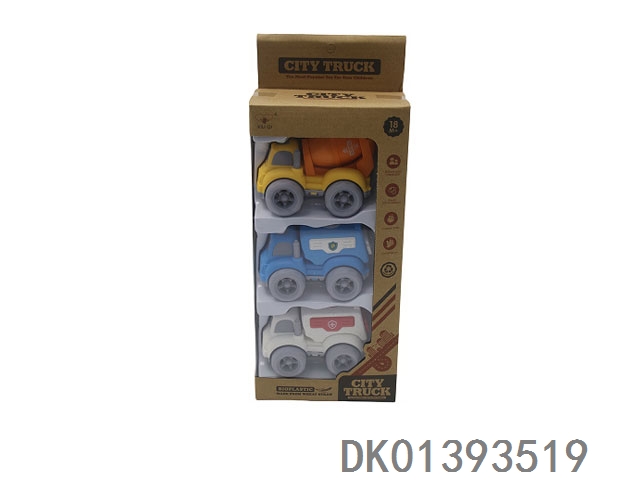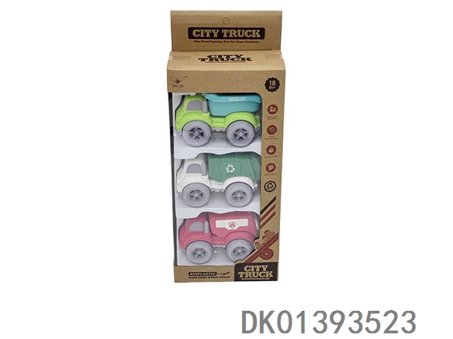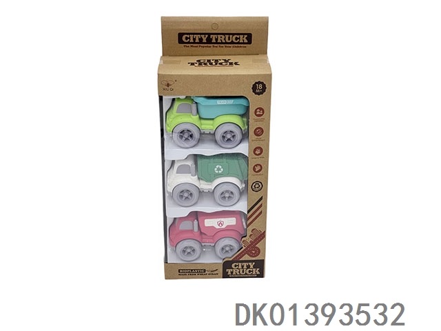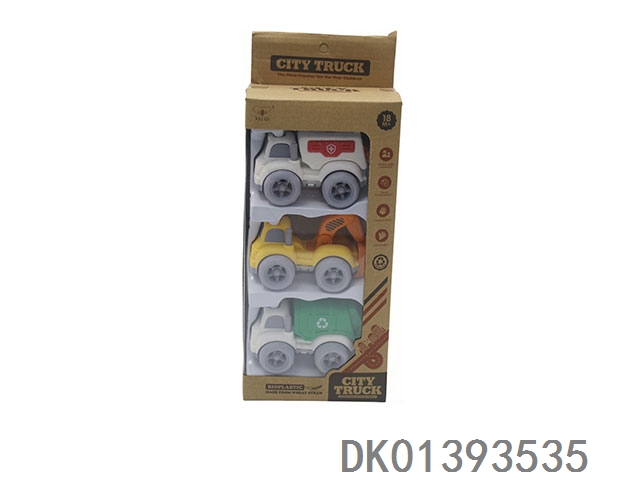 3 Sets of window box wheat straw inertia cartoon car