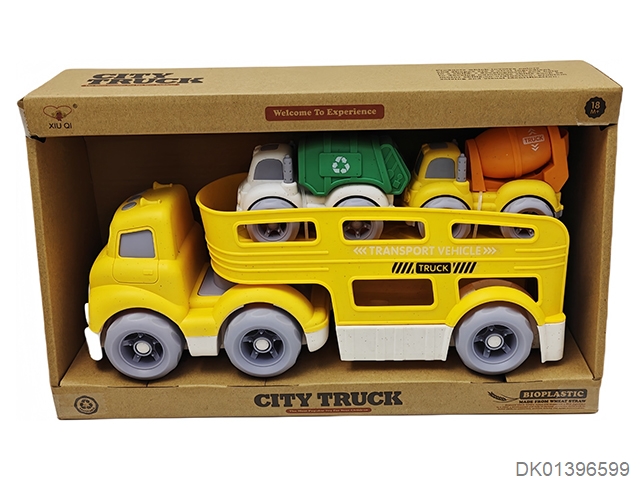 Straw taxi cartoon tractor transporter (no light music, with 2 scooters)