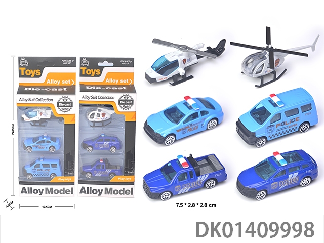 Sliding alloy police car aircraft (set of 3)