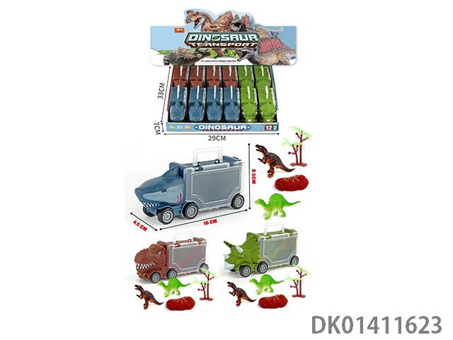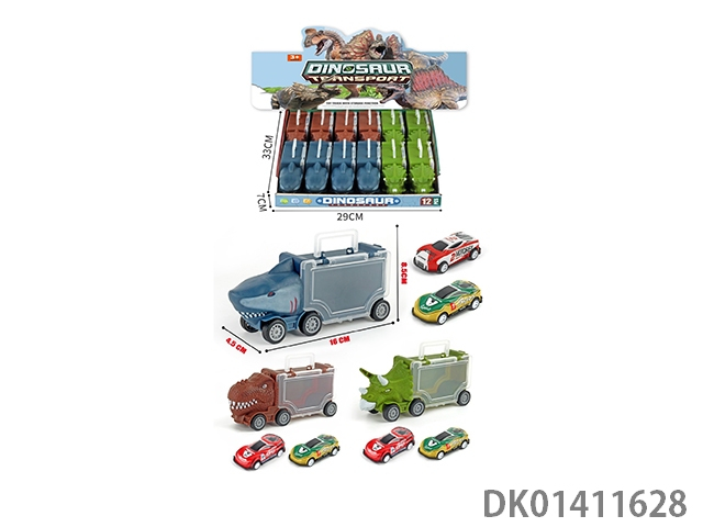 Sliding dinosaur and tyrannosaurus rex and shark storage car 12pcs/box