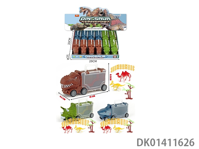 Sliding dinosaur and tyrannosaurus rex and shark storage car 12pcs/box