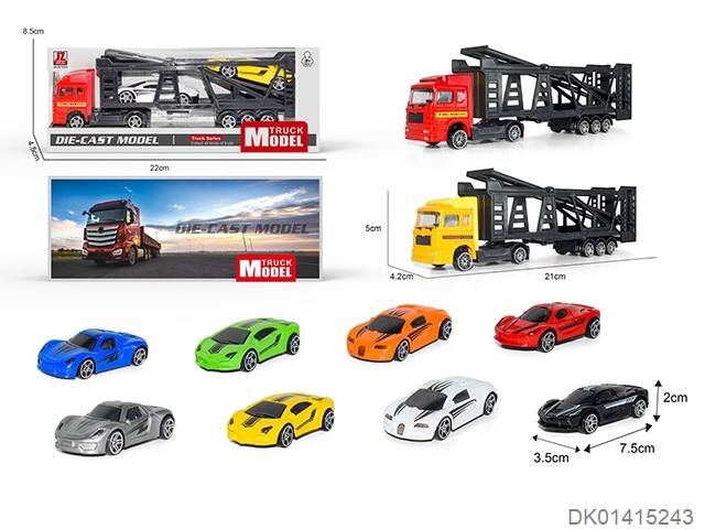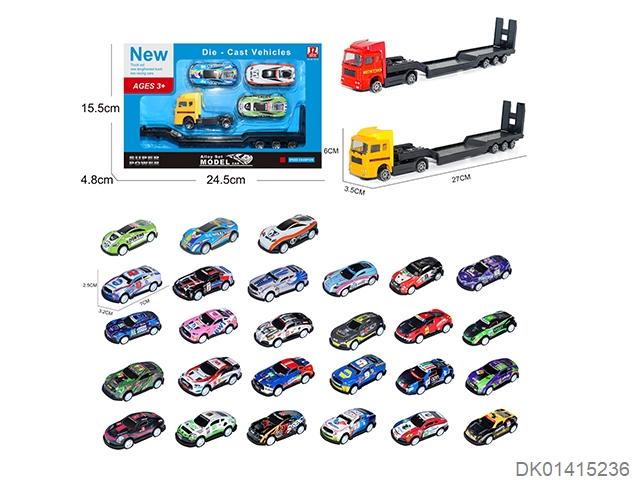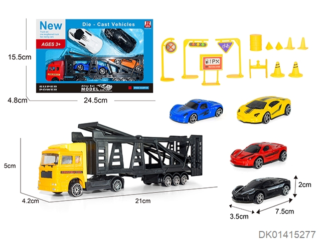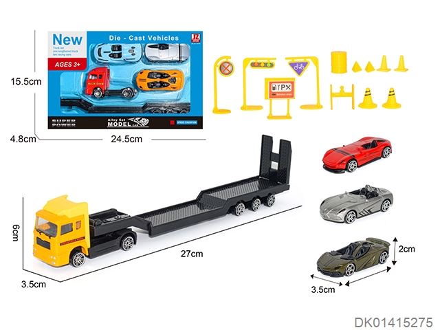 Alloy trailer carrying 3 alloy cars and 12pcs road signs