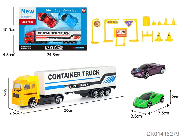 Alloy container truck with 2 alloy trucks and 12 road signs