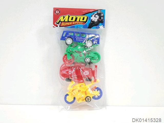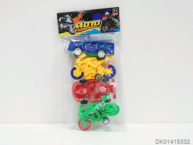 Sliding solid color bus, go kart, motorcycle (4 pieces)