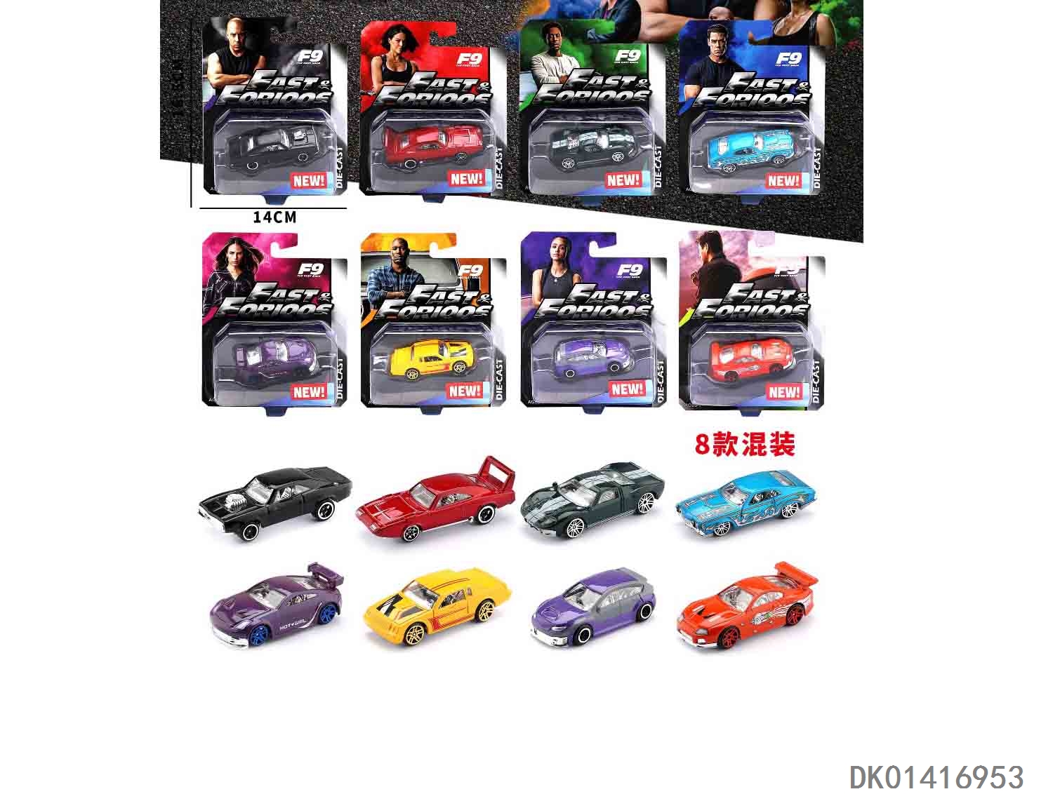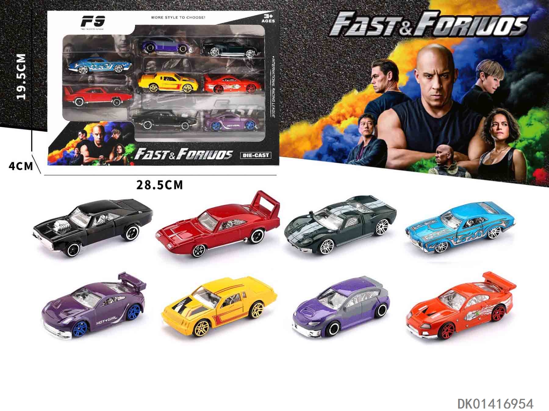 1: 64 Speed and passion series sliding alloy car 8 mixed models (single double blister)