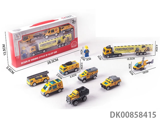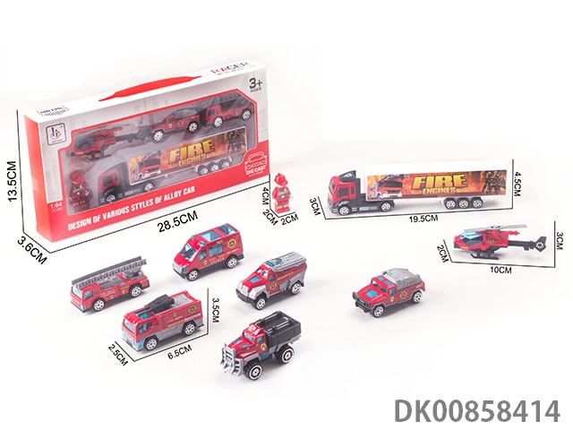 1: 64 Alloy taxiing fire truck and container truck and building block man