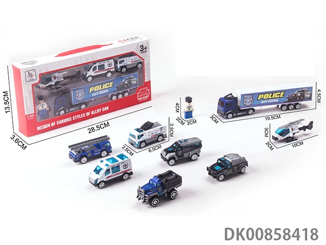 1: 64 Alloy taxiing ambulance and container car and building block man