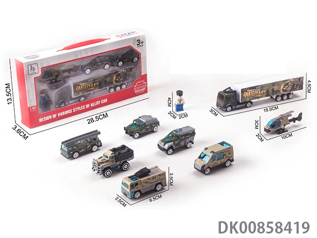 1: 64 Alloy taxiing camouflage military vehicles and airplanes and cars and container cars and building block men