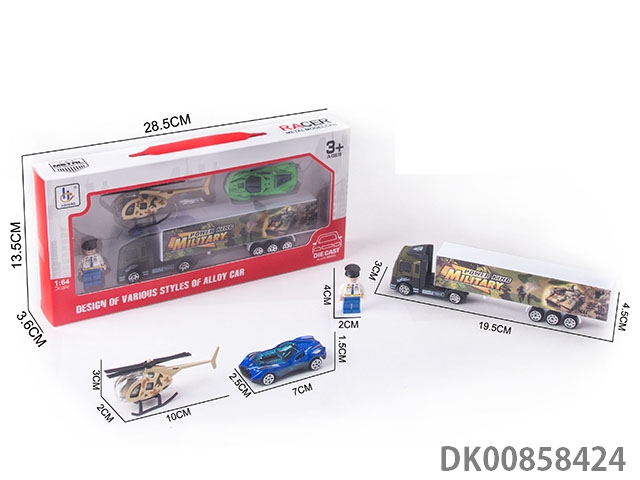1: 64 Alloy taxiing camouflage military vehicle and container vehicle and building block man