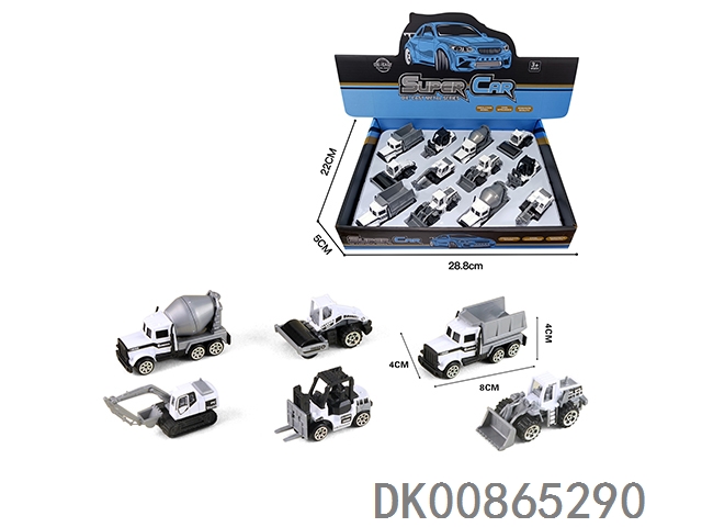 12 Display boxes of 1:64 alloy sliding white engineering vehicle