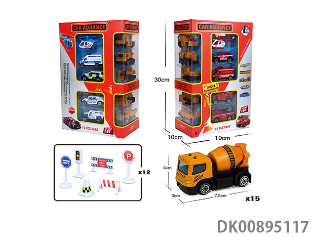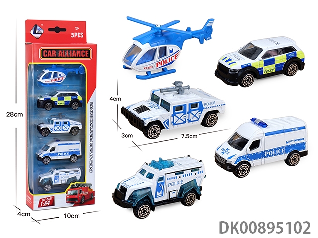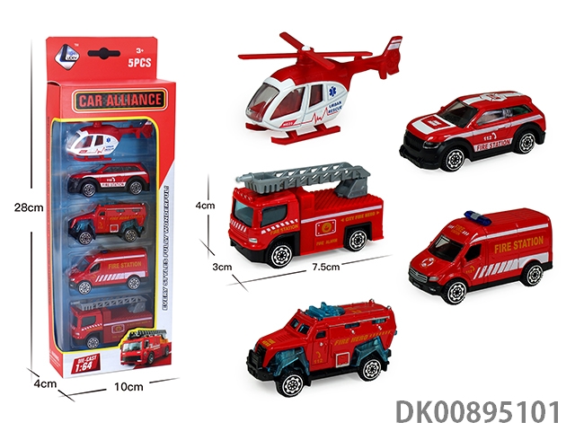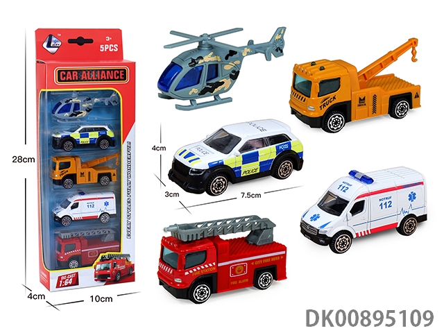 1: 64 Alloy sliding engineering vehicle and fire engine and police vehicle set