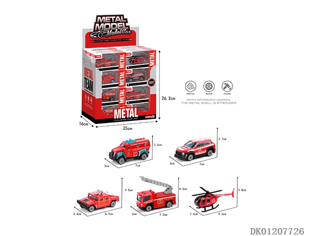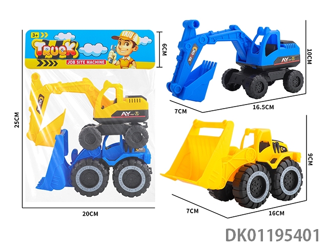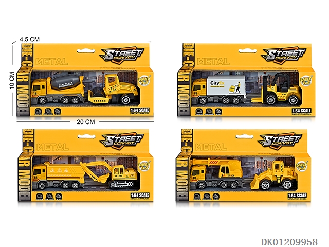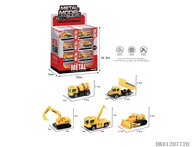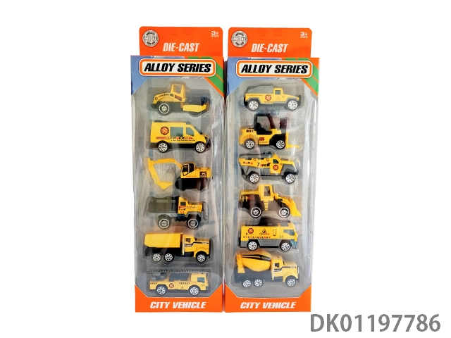 Alloy sliding engineering vehicle 6 sets, 2 mixed packages