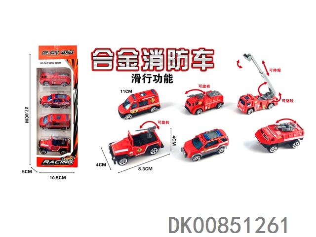 1: 64 Alloy fire truck 5pcs