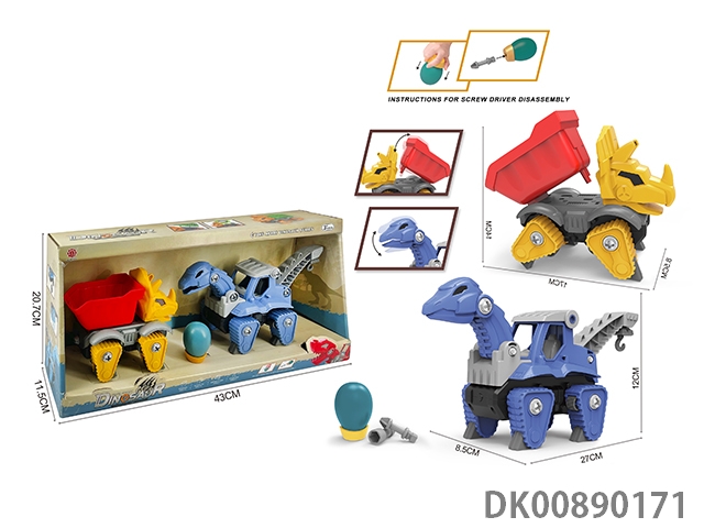 Taxi function and sound diy brachiosaurus engineering vehicle and 3-corner dragon tipper 2pcs/box