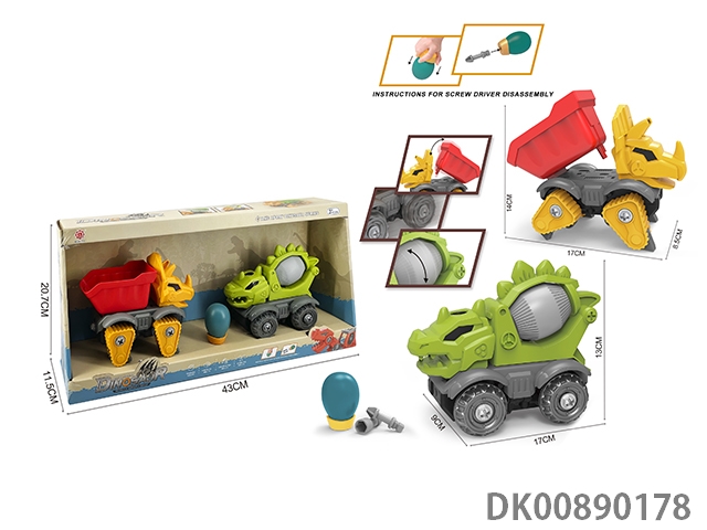 Taxi function diy brachiosaurus engineering vehicle and 3-corner dragon sanitation vehicle 2pcs/box