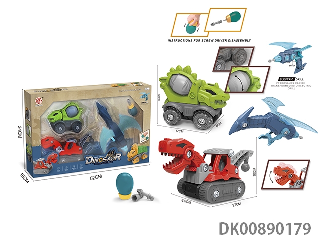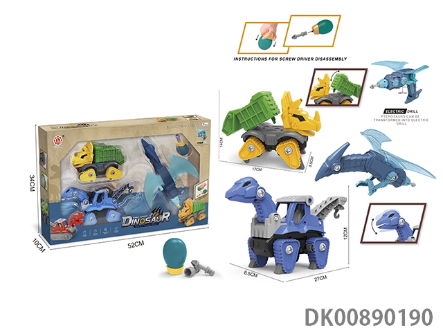 Taxi function diy tyrannosaurus rex engineering vehicle, stegosaurus mixer and pterosaur deformation electric drill (electric drill does not include 2 * aa)